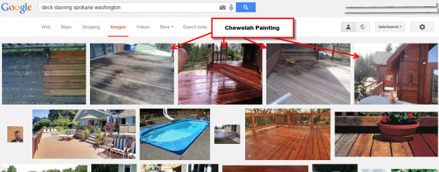 Chewelah Painting Spokane Washington – recently I made 10 videos for them. Each video was created around a niche keyword phrase. The one below is Deck Staining Spokane Washington. Note the logo video and how he has position on Google #1,2,3. They also rank for at least 5 other search terms related to deck staining and refinishing. Combine with the other 9 videos and they dominate their local market.